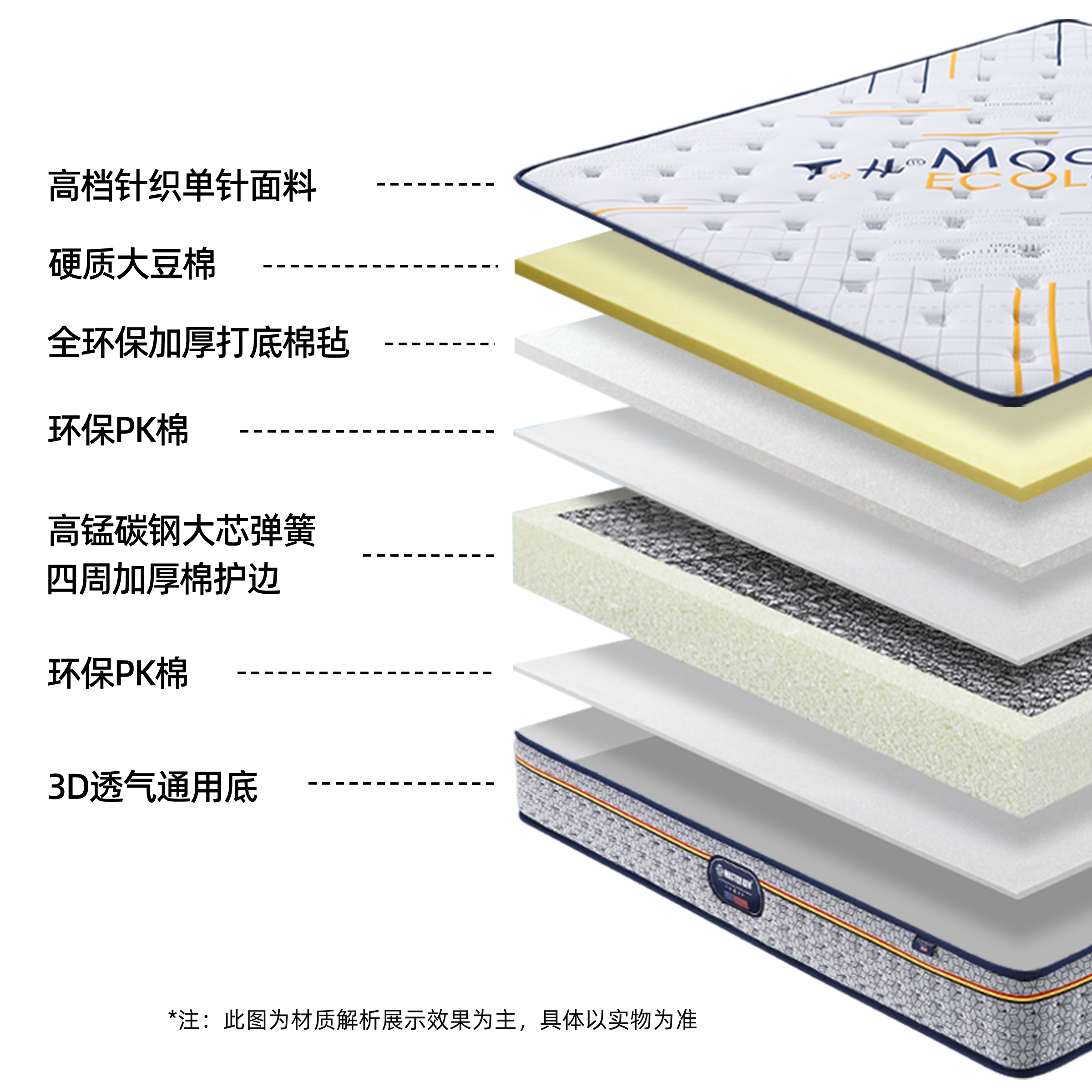 | A656 | 180*200cm | 美金邦-儿童 | 高档针织单针面料+硬质大豆棉+高回弹海绵+加密高锰碳钢弹簧 |