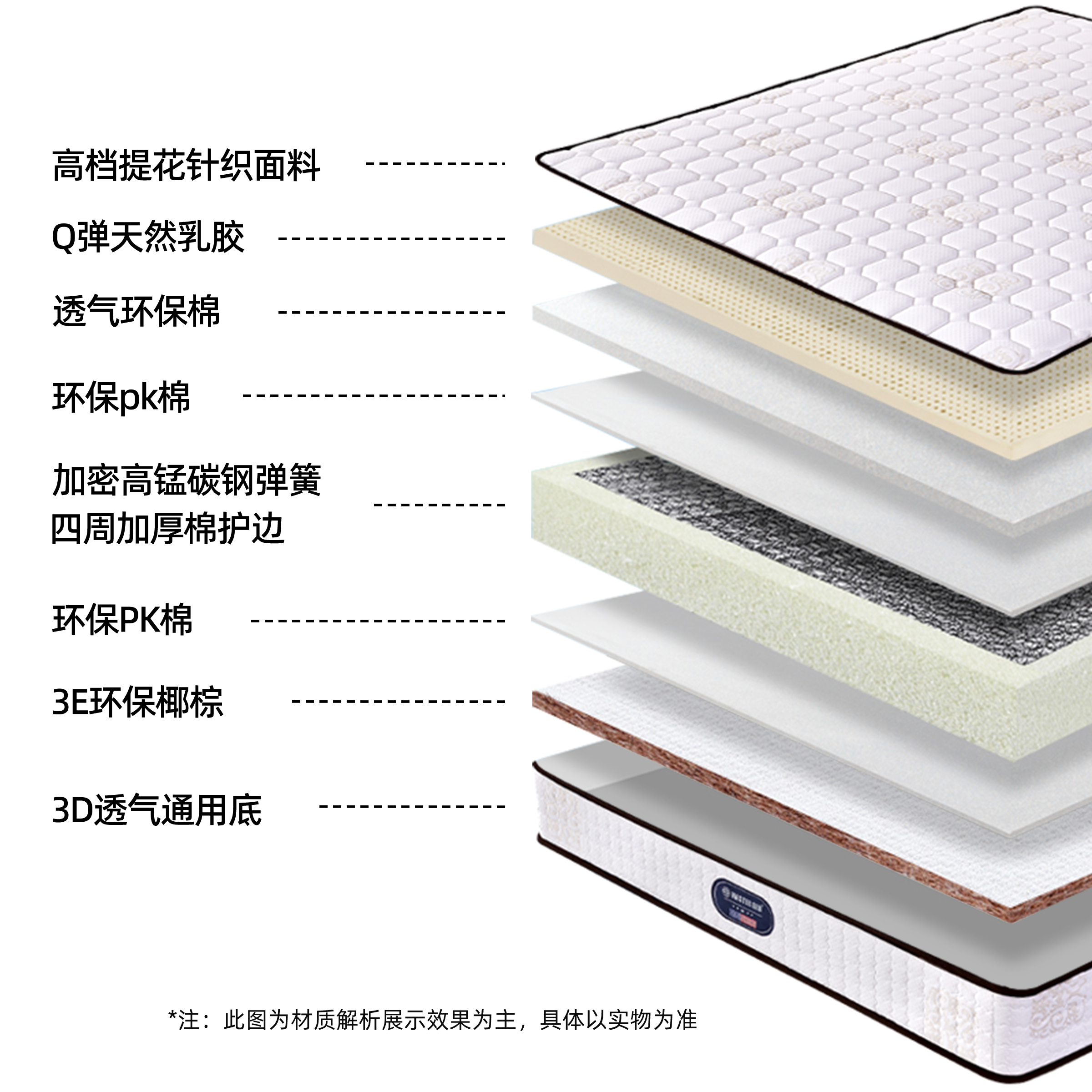 (高档提花针织面料+天然乳胶+3E环保椰棕+加密高锰碳钢弹簧+棉毡打底)