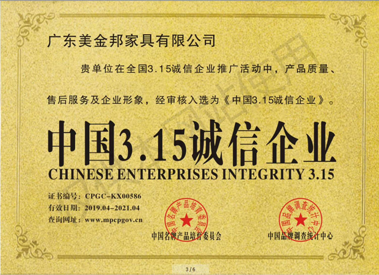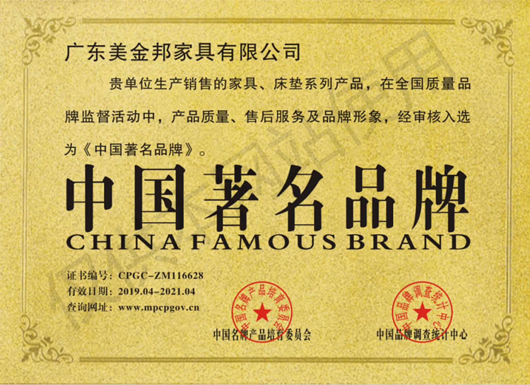 | 经营范围: | 在全国3.15诚信企业推广活动中,产品质量、售后服务及企业形象,经审核入选为《中国3.15诚信企业》 | 经营范围: | 生产销售的家具、床垫系列产品,在全国质量品牌监督活动中,产品质量、售后服务及品牌形象,经审核入选为《中国著名品牌》 | ||