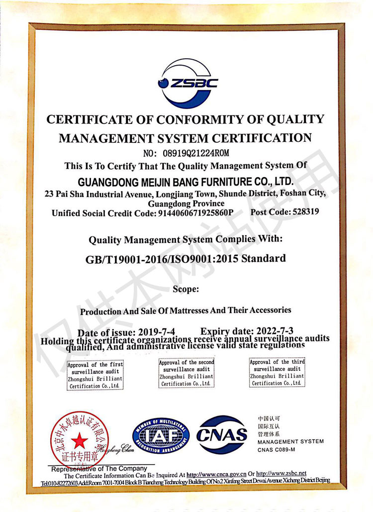 | 经营范围: | 床垫及其配件的生产与销售 | 经营范围: | 床垫及其配件的生产与销售 | ||