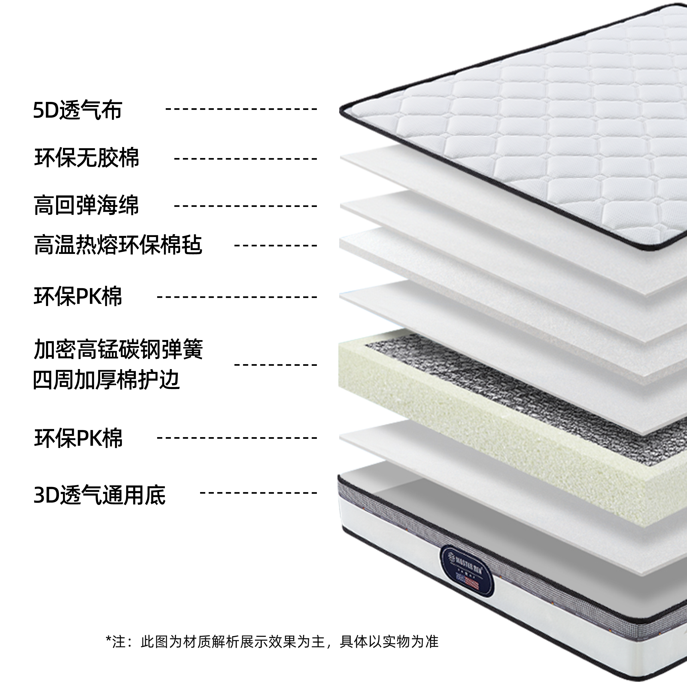 | A650 | 180*200cm | 美金邦-儿童 | 5D透气面料+高回弹海绵+零胶水环保棉+加密高锰碳钢弹簧 |