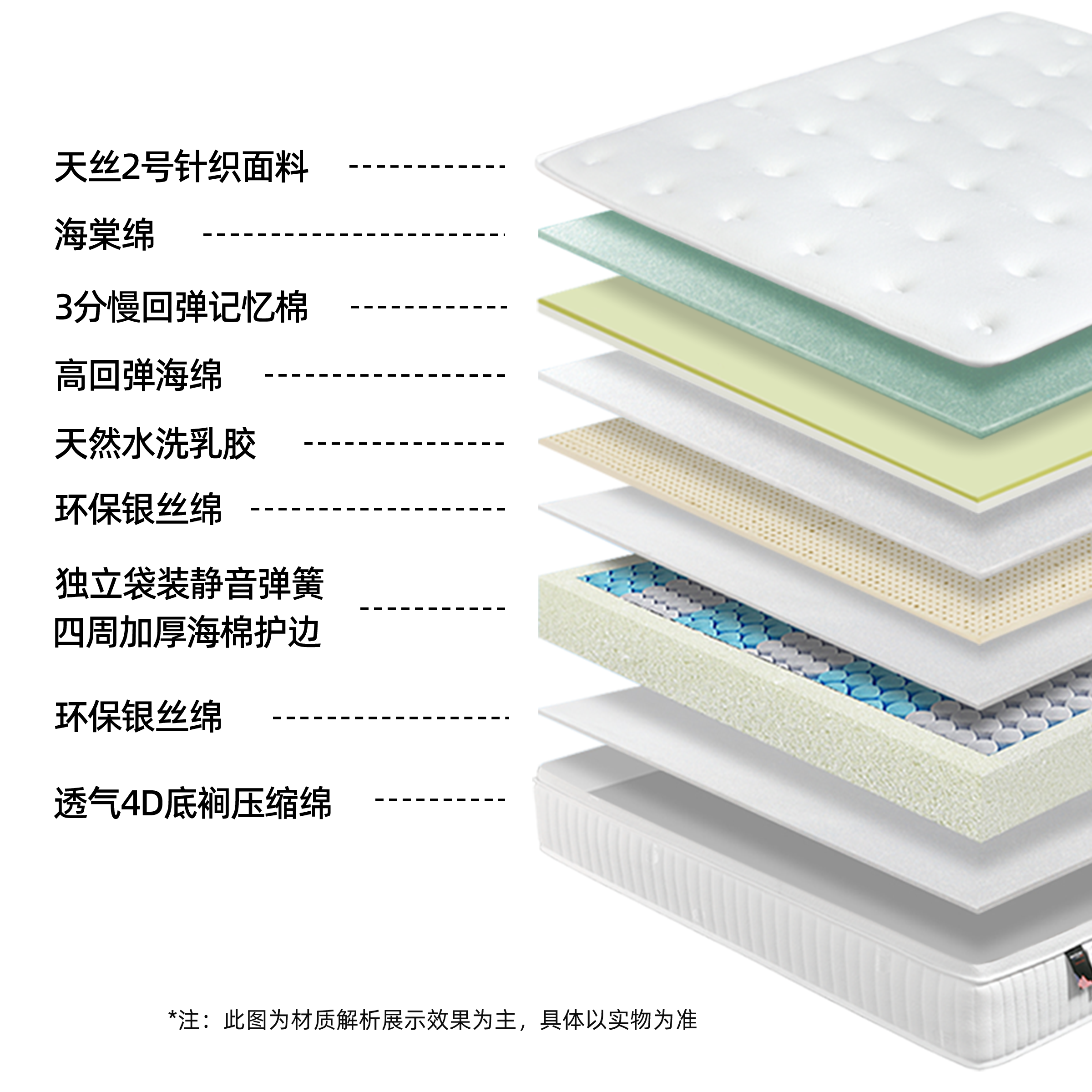 | A1209 | 180*200cm | 美金邦-养生 | 天丝针织面料+水洗乳胶+记忆棉+独立袋装弹簧 |