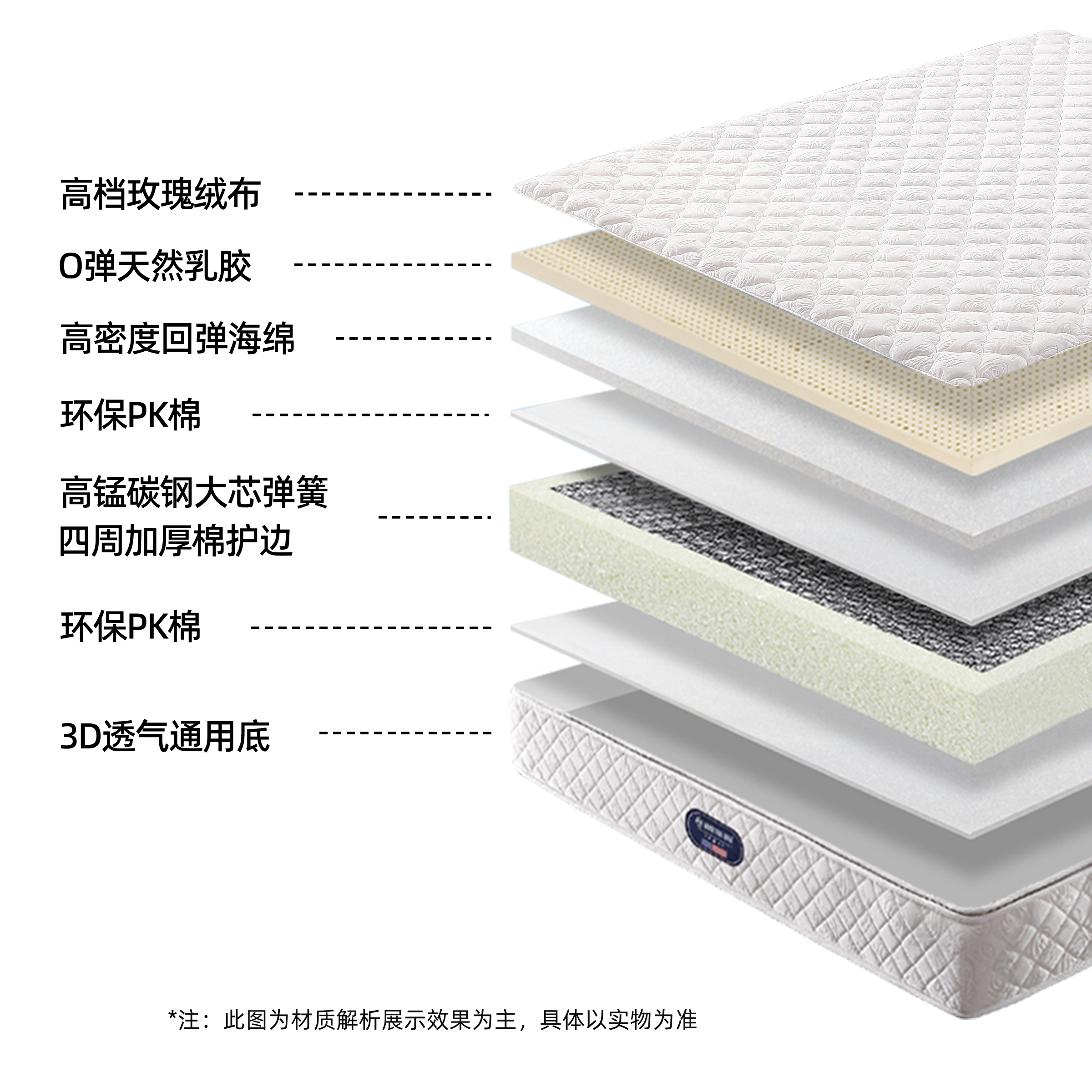 (高档玫瑰绒针织面料+天然乳胶+慢回弹0压棉+加密高锰碳钢弹簧)