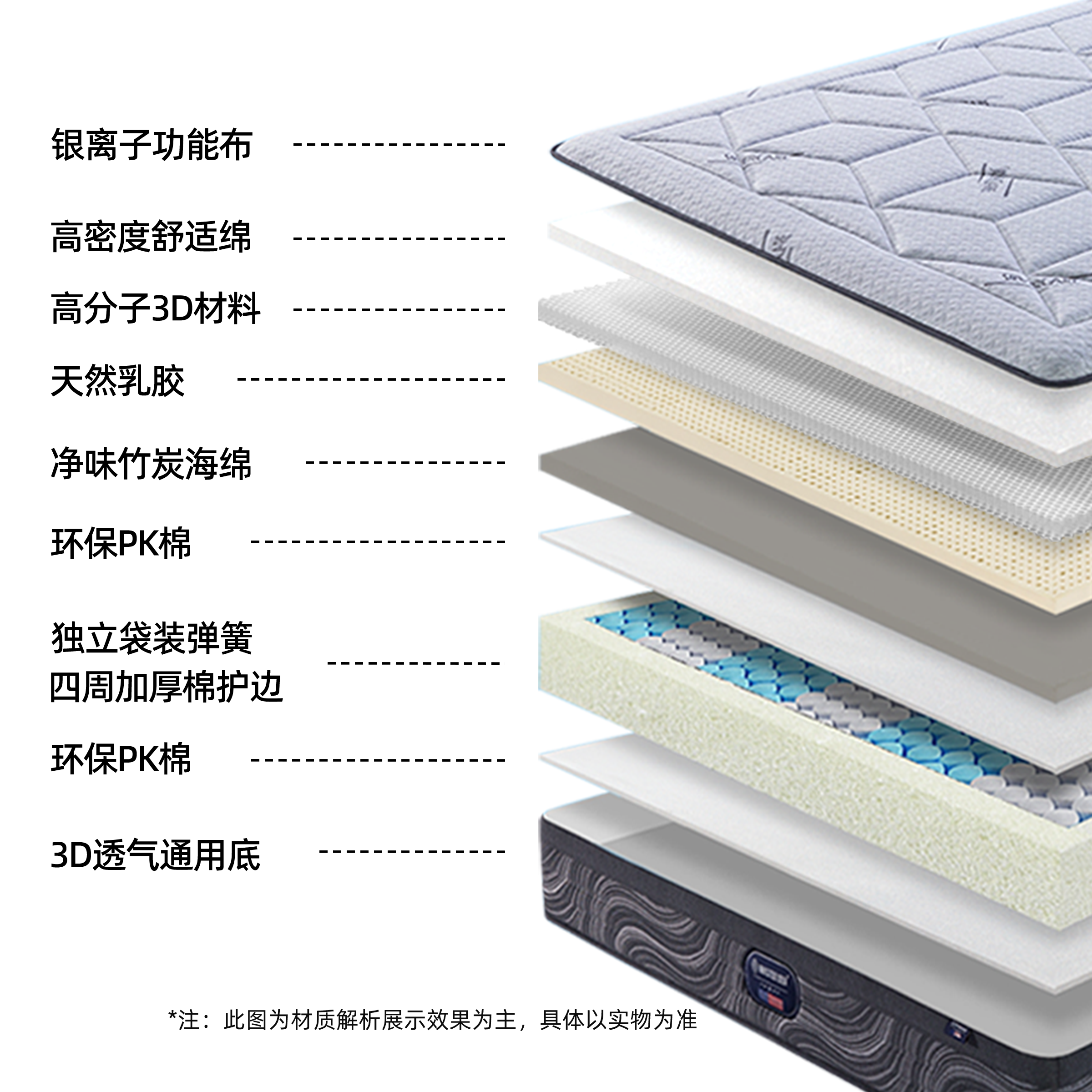 (3A级银离子面料+水洗乳胶+竹炭海绵+独立袋装弹簧+PK棉)