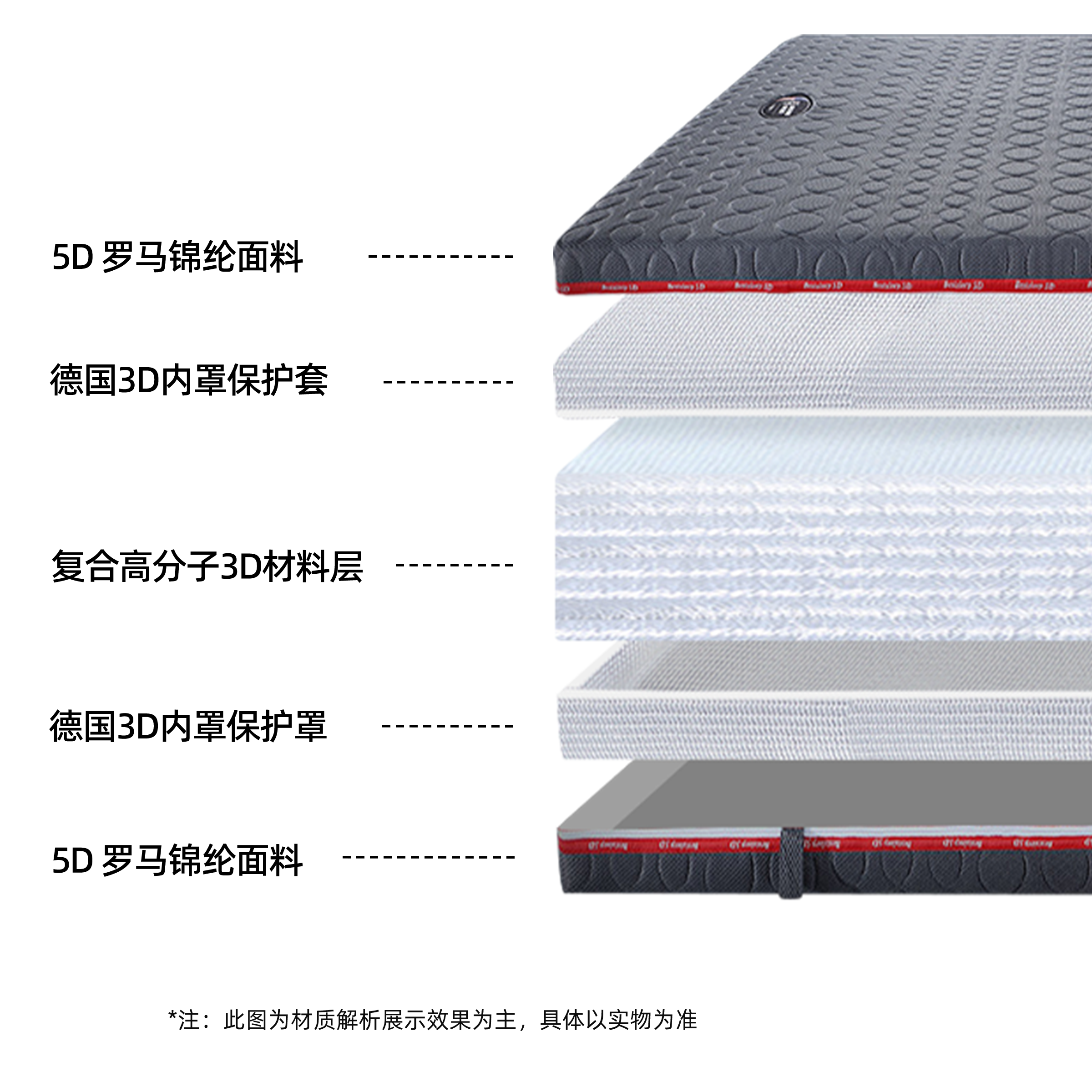 5D罗马锦纶面料:细致面料,亲肤柔软,具有透气性强、抗菌防螨的特性只有在每一处细节上都用心,才能给您舒适睡眠体验。